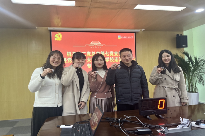 3月20日下午,机关第七党支部在行政楼一楼第三会议室开展“二十大精神应知应会抢答竞赛”活动,活动由支部书记申法青主持,全体党员参加了本次活动。 本次活动依据机关第二党总支“推进党的二十大精神走深走实系列活动”相关方案要求开展。全体党员分三队进行抢答,分别为勇气队、智慧队以及梦想队。三队选手激烈角逐,最后智慧队获得第一名。机关第七党支部宣传委员王斌表示,通过参与知识竞赛的形式,对党的二十大精神有了更为深刻的理解,今后,将进一步筑牢理想信念,以扎实的工作作风,全心全意为师生服务,脚踏实地做好本职工作,不断地丰富自己的工作技能和实践本领,做到知行合一、勇挑重担的青年先锋。 最后,申法青对本次活动作总结发言。本次知识竞赛,显现出理论学习的薄弱环节,为日后理论学习提供了方向。当前,国内外形势严峻复杂,我国发展面临诸多风险挑战,更加要求全体党员要对党忠诚,坚定拥护“两个确立”、坚决做到“两个维护”。全体党员要以本次活动为契机,不断深入学习党的二十大精神,提高自身政治理论水平,为学校高质量发展贡献自身力量。